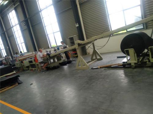 “三晶或羅賓漢”變頻器,計(jì)量泵最高轉(zhuǎn)數(shù) 0-60轉(zhuǎn)/分2)計(jì)量泵與減速箱連接,采用萬(wàn)向聯(lián)軸器,泵的入口及出口各配一個(gè)壓力傳感器,PBAT片材擠出機(jī)(四)片材模具:產(chǎn)品要求:厚度0.8-1.5mm,公差±0.10;制品寬度:1000mm 1) 出料有效寬度1150mm;制品寬度1000mm;制品厚度0.8-1.5mm,模頭材料:P20鋼材,模頭流面鍍硬鉻處理(五)三輥壓光機(jī)JDL-1200 《一套》1、機(jī)架:采用型鋼焊接而成,有較高的鋼性。整個(gè)機(jī)架由兩件墻板、頂聯(lián)接板及底座組成,各安裝面均經(jīng)過(guò)機(jī)械加工,以確保安裝精度。2、減速箱、電動(dòng)機(jī):本機(jī)采用輥筒獨(dú)立傳動(dòng),每個(gè)輥筒軸端均配有一傳動(dòng)減速箱,傳動(dòng) PBAT片材擠出機(jī) 平穩(wěn)、噪音低、效率高,結(jié)構(gòu)緊湊。電動(dòng)機(jī)采用交流變頻電機(jī),功率:1.5 kw×3臺(tái);三輥線速度為0-10米分鐘3、輥筒組件1) 輥筒直徑:上輥φ400mm /中輥φ400mm/下輥φ400mm,輥面寬度1200mm2) 輥筒,輥筒控溫水進(jìn)出口徑:11/4”輥筒圓度:0.005mm,輥筒同軸度:φ0.012mm輥筒表面粗糙度:Ra0.025μm,輥筒外圓表面淬硬HRC55~60,淬硬深度3~5mm;輥筒表面鍍硬鉻,t=0.08~0.10,輥筒壁厚:30mm4、輥筒調(diào)距裝置1) 輥筒上下采用電動(dòng)渦輪蝸桿升降。微調(diào)為手動(dòng),并兩端可單獨(dú)調(diào)節(jié),調(diào)節(jié)范圍0-70mm,2) 輥筒間隙調(diào)整采用絲桿結(jié)構(gòu),手動(dòng)微調(diào),微調(diào)范圍:1-5mm,刻度盤(pán)指示5、移動(dòng)組件1) 整個(gè)移動(dòng)組件由傳動(dòng)系統(tǒng)、滾輪升降組件等組成,傳動(dòng)電機(jī)功率:0.37kw采用雙級(jí)減速器傳動(dòng),移動(dòng)平穩(wěn),亦可手動(dòng)微調(diào)2)三輥前后移動(dòng)導(dǎo)軌要求長(zhǎng)度為:1500mm;導(dǎo)軌上要有預(yù)留固定孔;方便在客戶現(xiàn)場(chǎng)安裝膨脹螺絲